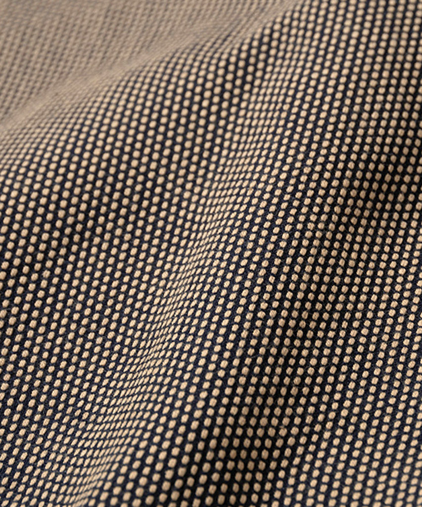 A striking piece adorned with a precise pattern of sashiko stitches. Woven from 100% cotton sashiko fabric on traditional dobby looms, it offers a soft, comforting touch that gently soothes the mind. The material is supple yet durable, wrinkle-resistant, and easy to care for.