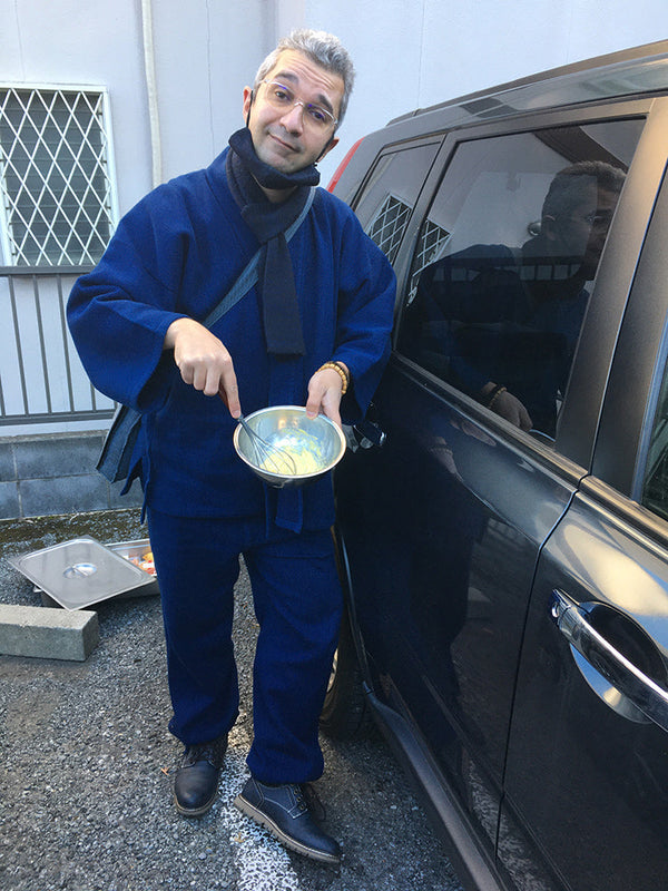 Wasuian's Samue is made by the backstitching method of traditional Japanese clothing. Although it is somewhat inefficient to manufacture, our samue is sewn at the back, not on the shoulders, with the same relaxed shoulder silhouette as a kimono. Since ancient times, the back seam has been handed down "to prevent evil from entering through the back." This is a unique characteristic of traditional Japanese clothing that we wish to preserve.