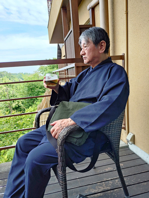 WASUIAN's Samue is made by the backstitching method of traditional Japanese clothing. Although it is somewhat inefficient to manufacture, our samue is sewn at the back, not on the shoulders, with the same relaxed shoulder silhouette as a kimono. Since ancient times, the back seam has been handed down "to prevent evil from entering through the back." This is a unique characteristic of traditional Japanese clothing that we wish to preserve.