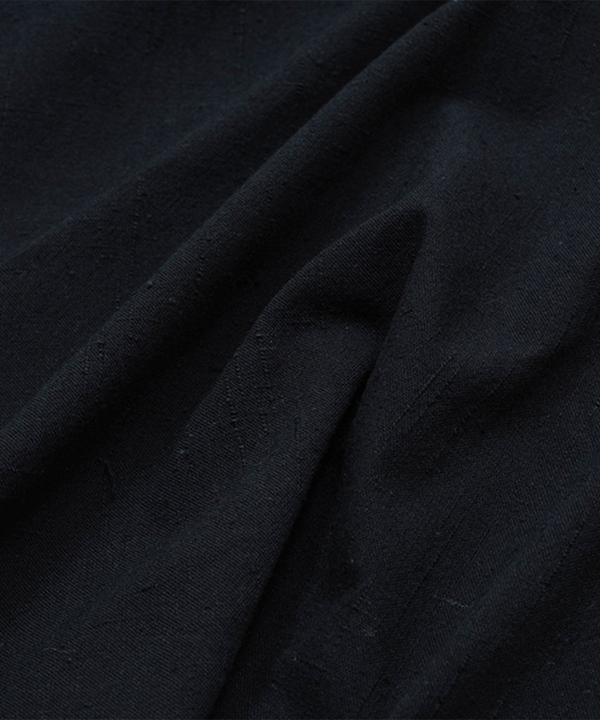 The collar has always been an essential part of the kimono, as is evident in the idiom "Eri Wo Tadasu" ("straighten the collar"). For our haori, we avoid placing stitches on the front of the collar by using the sophisticated drop stitching technique. It relies on the fingertips to apply the sewing machine to the edge of the collar, just 1 to 2 mm away. Our artisans carefully make every garment by hand. We strive to balance preserving the essence and techniques of traditional Japanese clothing while evolving the designs to match modern lifestyles.