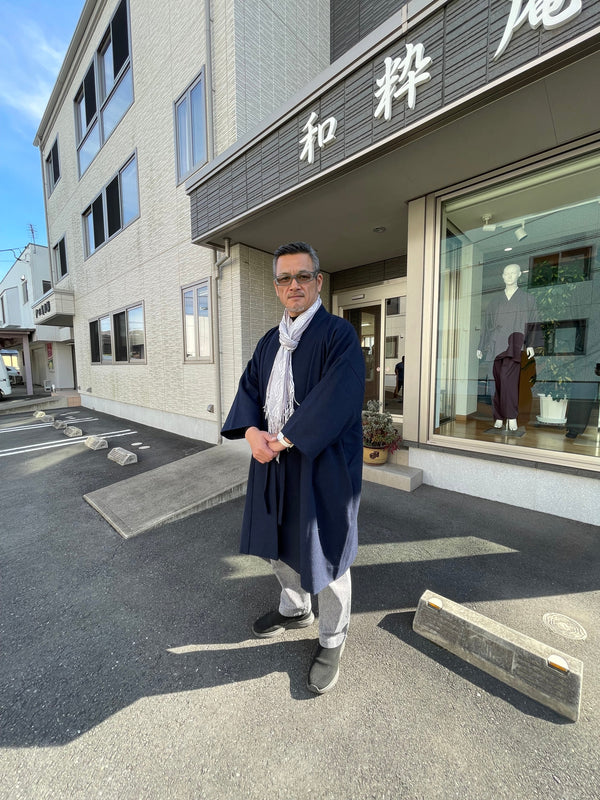 WASUIAN's Samue is made by the backstitching method of traditional Japanese clothing. Although it is somewhat inefficient to manufacture, our samue is sewn at the back, not on the shoulders, with the same relaxed shoulder silhouette as a kimono. Since ancient times, the back seam has been handed down "to prevent evil from entering through the back." This is a unique characteristic of traditional Japanese clothing that we wish to preserve.