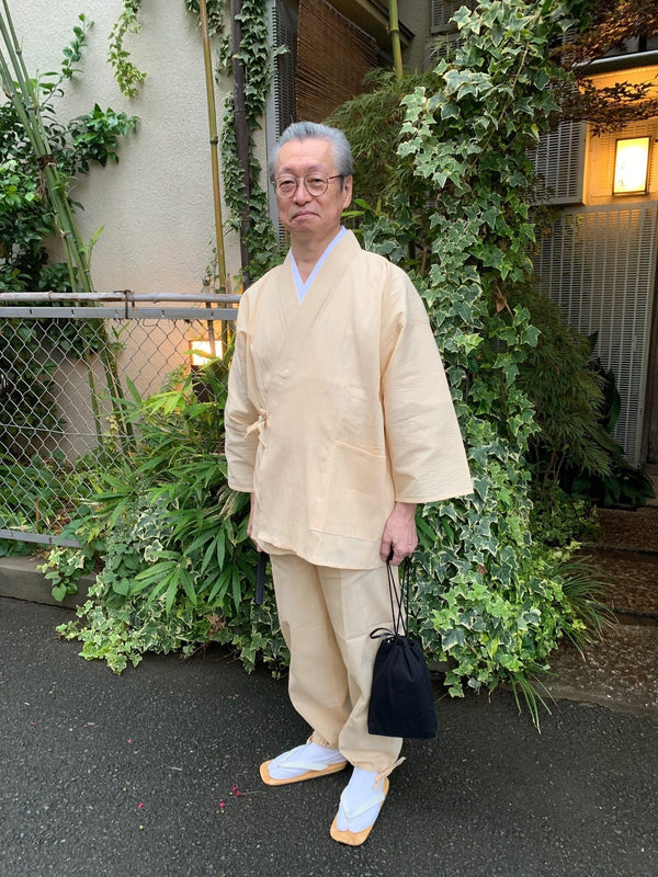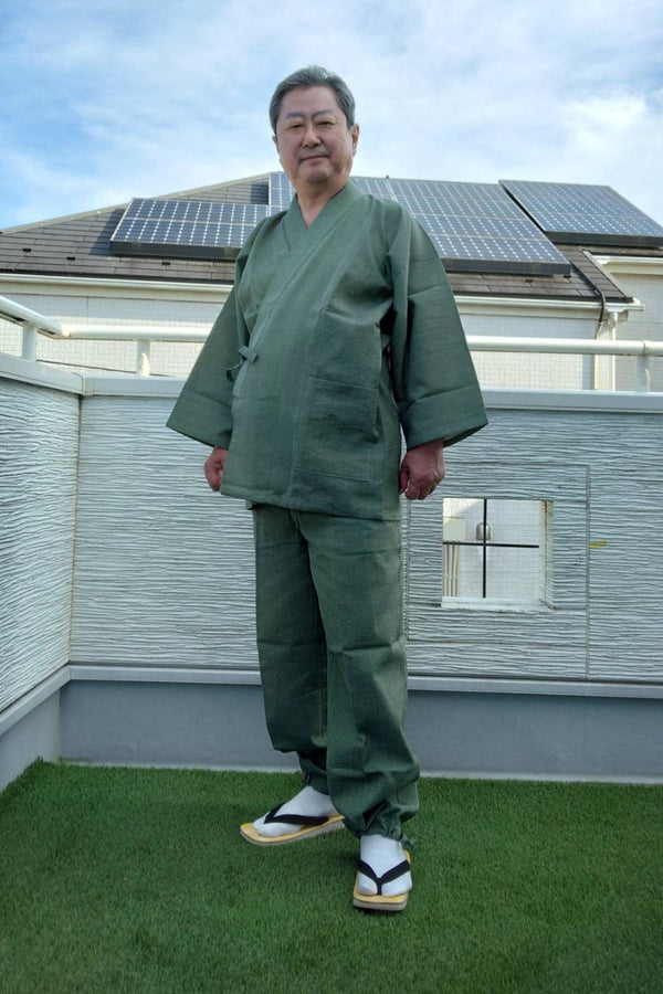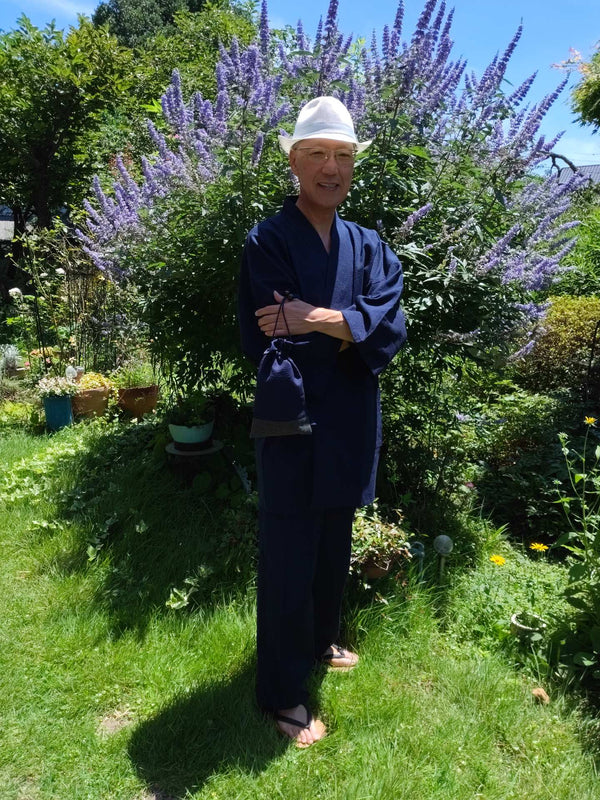 There are irregularities called "shibo" wrapping around vertically on the surface of the fabric, so it remains comfortable by not sticking to your skin. This samue is comfortable as working clothing to wear in summer. It is a safe choice for anyone to wear because it is a solid product, often given in Japan as a gift for Father's Day and other celebrations.