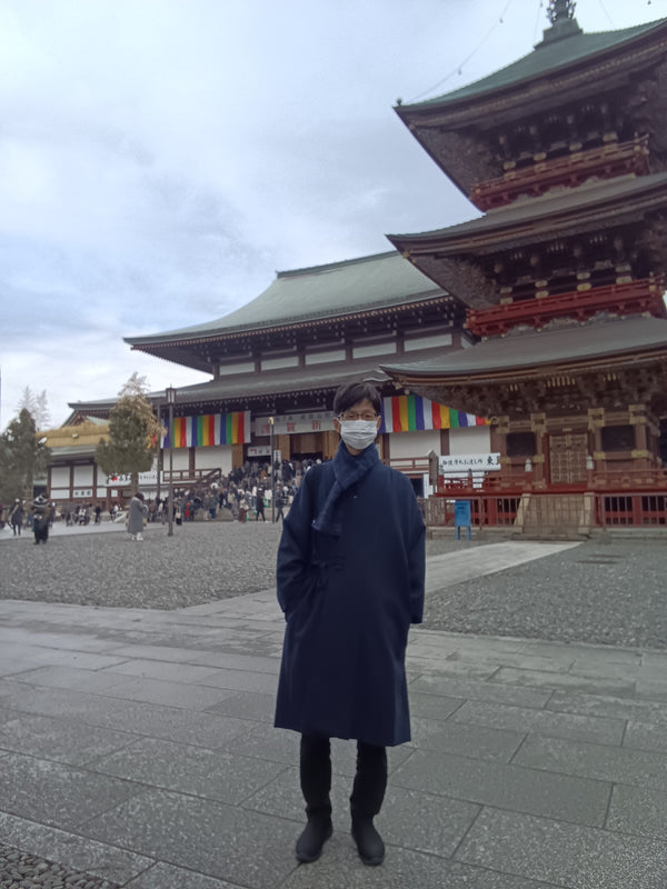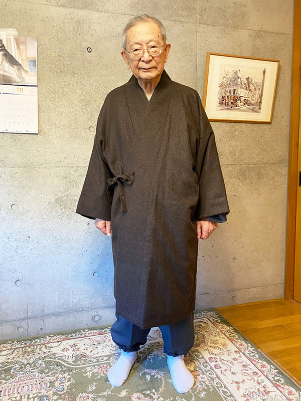 When going out in the cold, you may not feel warm and comfortable wearing only a samue, but you may not want to wear a Western-style coat with it. This coat will give you the choice to wear a warm coat that goes well with your samue. The wool blend fabric is strong enough to hold its shape, but lightweight enough to be worn quickly and easily.