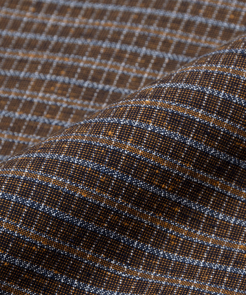 Mokuito is a yarn of different colors that is mixed by twisting yarns, producing a deep and refined color tone. Its rich texture is further enhanced by the contrast with the solid fabric, creating an elegant and composed appearance.