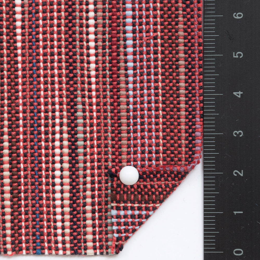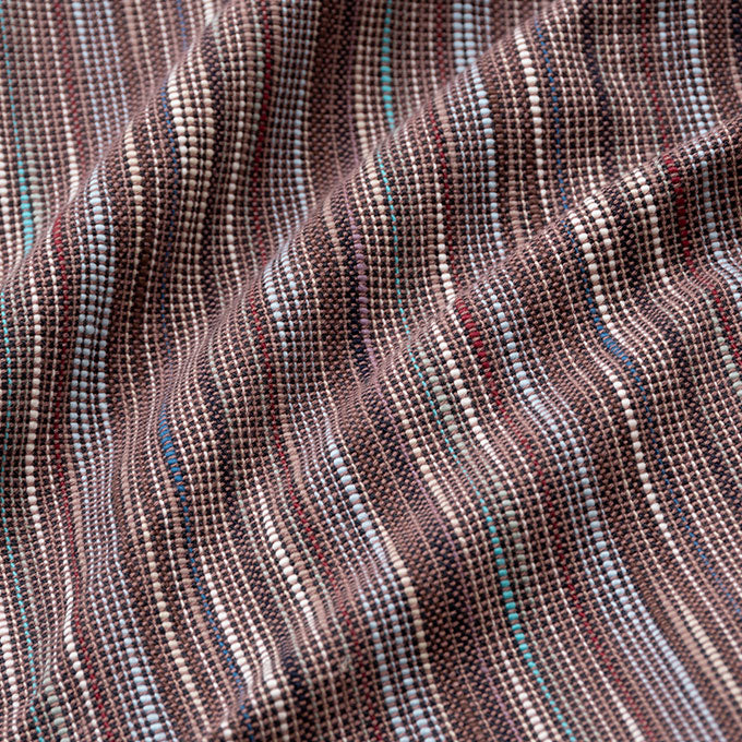 The fabric has kasuri patterns with as many as 10 colored threads woven into the fabric. It is an extremely intricate fabric dyed by artisans in different colors for each thread.